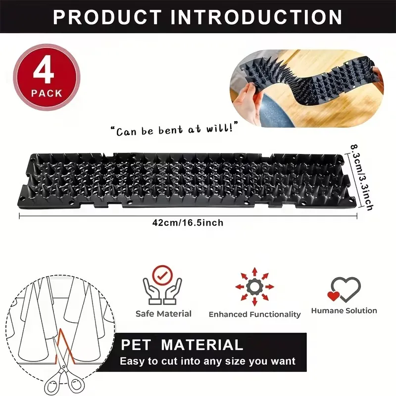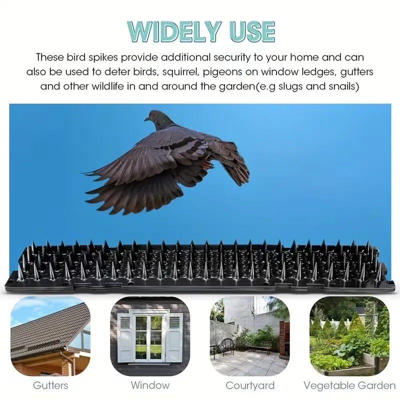 مجموعة من 4 مسامير شوك طارد الطيور باللون الأسود،
