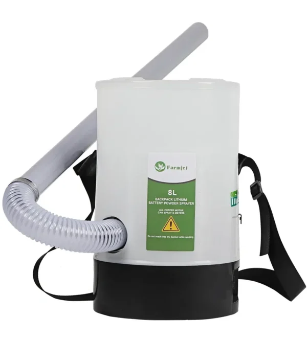 - توزيع احترافي: المحرك الكهربائي يضمن خروج البودرة على شكل غبار ناعم جداً يخترق المسام ويقضي على الآفات بفاعلية.